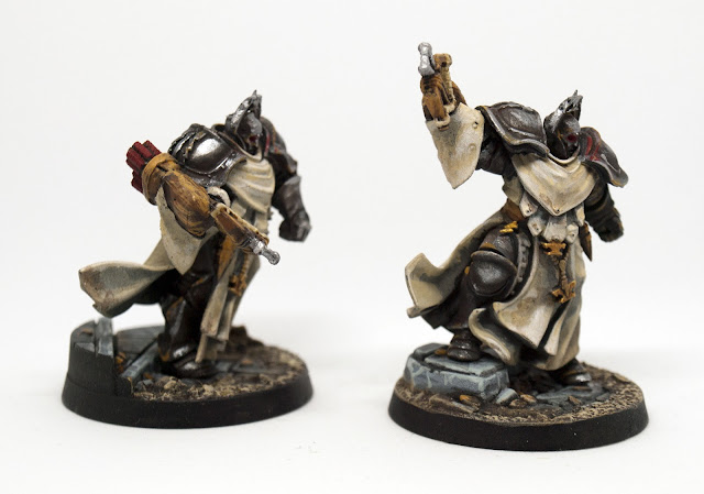 Vamos al tema. Seguramente habréis descubierto que se trata de la enésima transformación de los Sigmaritas de Warhammer. En mi caso quería, como he comentado, utilizarlos como base para constructos de Frostgrave, y creo que tienen todo el aspecto de viejos autómatas. Les cambié un brazo con un martillo (bastante horroroso) por una ballesta, a la que le puse un carcaj a modo de cargador automático (o algo por el estilo). No olvidemos que esto sí que "lo hizo un mago".
